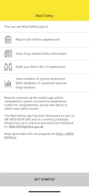 The Med Safety app has been developed as part of the WEB-RADR project. WEB-RADR is supported by the Innovative Medicines Initiative Joint Undertaking (IMI JU) under grant agreement n° 115632, resources of which are composed of financial contribution from the