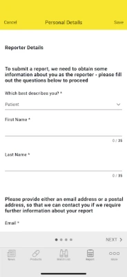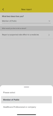 lets you report adverse effects to medicines, keep track of previously reported